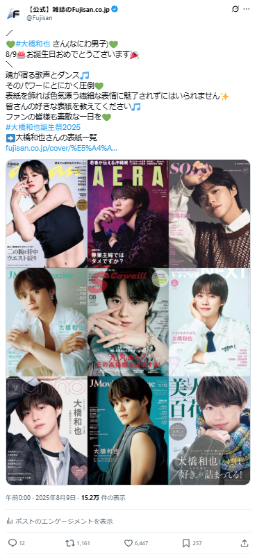 2025/8/9は大橋和也さんの28歳のお誕生日🎂🎉大橋さんが過去に飾った表紙を振り返り✨【バズリポート】